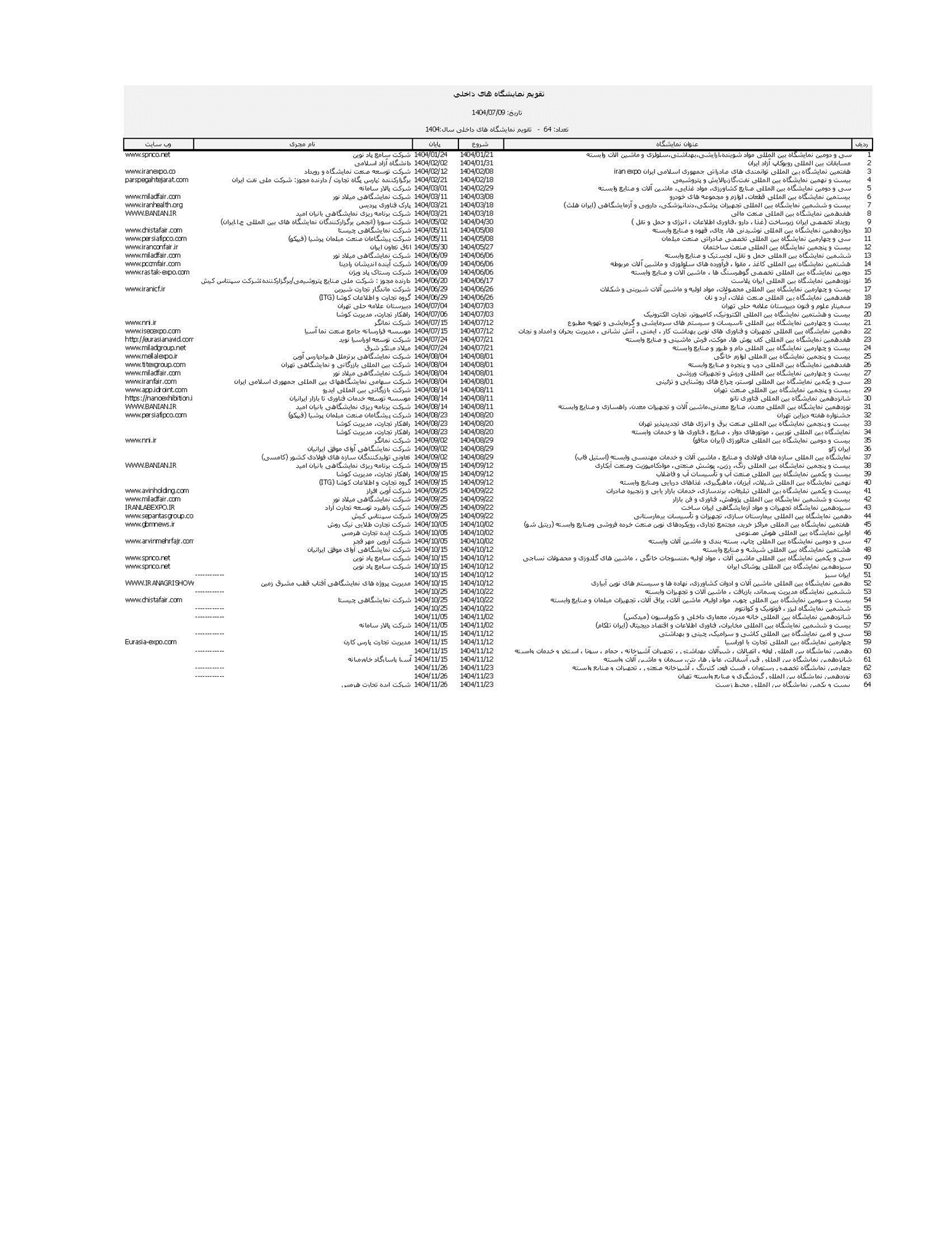 تقویم نمایشگاه‌های داخلی و بین المللی ایران در سال 1404 را در اینجا (فایل پی دی اف) ببینید